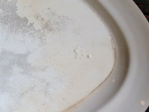 Stort Cremefarvet Aluminia fad med lækker patina. Mål 38x52cm. Fremstår med et enkelt glasur afslag på oversiden. Produceret mellem 1864-1924