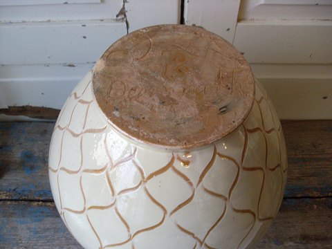Smuk Kähler gulvvase. Fremstår med gammel reparation, glasur afslag samt lille afslag ved basen, se billed. Højde 38cm.