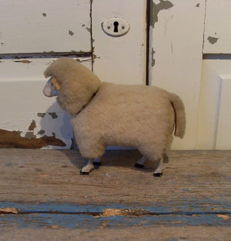 Dekorativt sjældent stort tysk legetøjs får, kan vippe med hovedet.