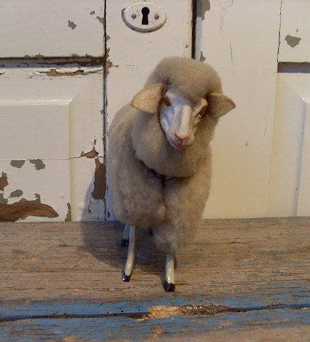 Dekorativt sjældent stort tysk legetøjs får, kan vippe med hovedet.