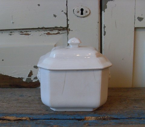 Smuk fajance lågskål med løve hoveder på siderne. Fremstår med hår revner og et afslag, se billed. Mål 11x13,5cm. Højde 15cm.
