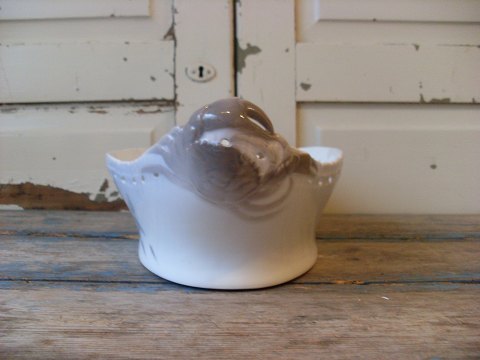 Royal Copenhagen stor tidlig Art Nouveau jardinere med gennembrudt kant, dekoreret med fisk, samt hanke i form af krabber. |