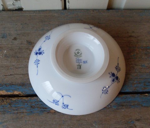 Royal Copenhagen Musselmalet riflet kagefad på fod No. 18, 2. sort. Højde 6cm. Diameter 17,5cm.