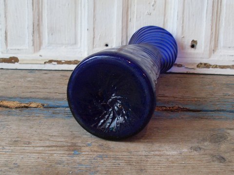 Zwibelglas/hyacintglas i mørkeblåt glas med skrå optiske striber.