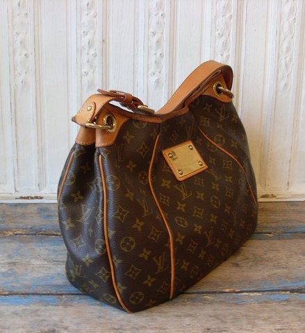 Monogram kanvas med kernelæderbesætning, justerbar rem. Indvendigt et stort rum med lille rum, samt lomme til mobiltelefon.