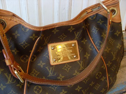 Monogram kanvas med kernelæderbesætning, justerbar rem. Indvendigt et stort rum med lille rum, samt lomme til mobiltelefon.