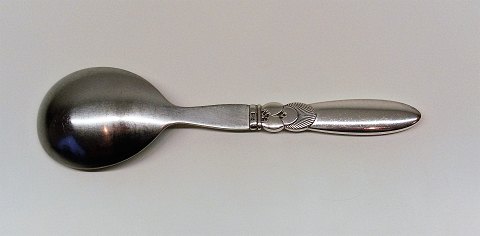 Georg Jensen kaktus stor serverings ske med laf af stål. Længde 23cm. Stemplet GJ, Sterling Denmark, produceret mellem 1930-45
