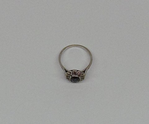 Smuk klassisk roset ring i 14kt hvidguld, prydet med stor dybblå safir omkranset af 12 diamanter på i alt ca. 1ct. med ældre slibning.