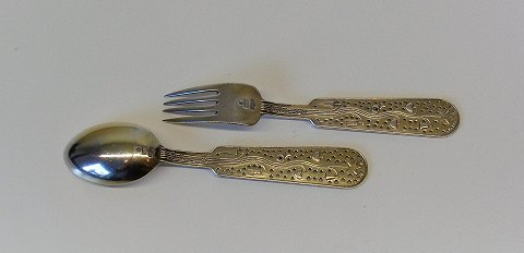 A. Michelsen Christmas spoon & fork in gilded sterling silver and enamel from 1939 Stamp: A. Michelsen - Sterling - Denmark Design: Olaf Stæhr-Nielse Length 16 cm.