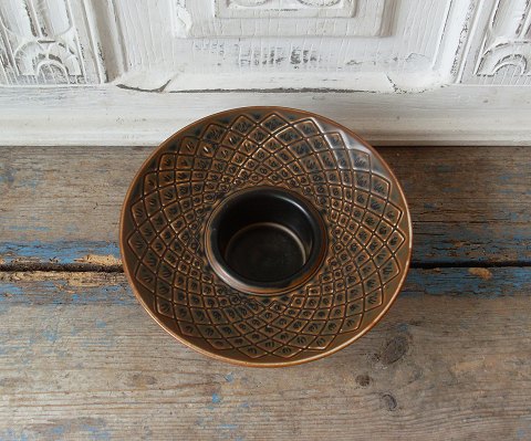 Gerd Bøgelund for Royal Copenhagen stentøjs stage til bloklys med mønster i relief. No. 21426, 1. sort. Højde 8,5cm. Diameter 19cm.