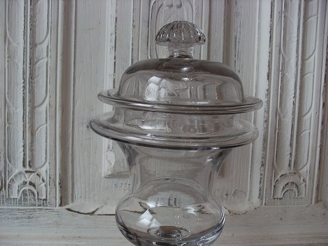 Smukt gammelt bolcherglas på fod, har en svag lilla tone. Fremstår med et lille afslag på kanten se billed. Højde 29cm.