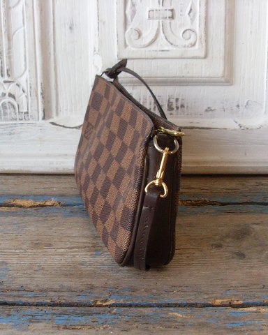 Lækker Louis Vuitton håndtaske, model Pochette i Damier canvas. Fremstår i pæn stand. Mål 12x21,5cm.