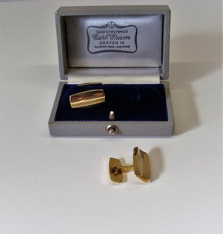 Par Hermann Siersbøl manchetknapper i 14kt guld. Stemplet HS 585. Mål på selve knappen 1x2,1cm. Vægt 6g.