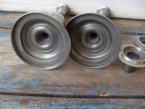 Par smukke 1800tals tulipanstager i tin, smukt graveret mønster, fremstår med initialer CQ samt årstal 1857.