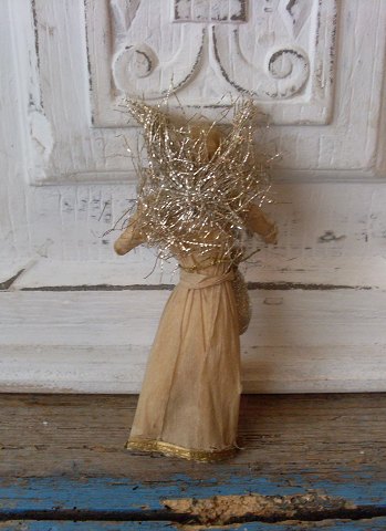 Sjælden stor engel i crepe og vat, fint detaljeret ansigt.
