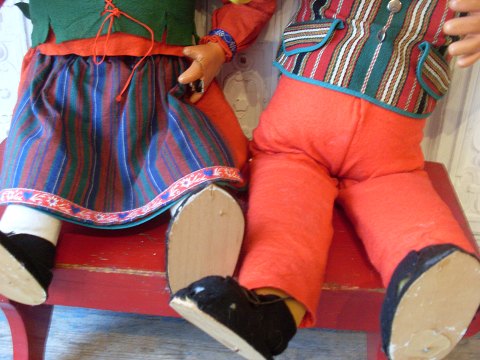Pair of beautiful old shop gnomes in a rare large size. Mother gnome is missing two fingers, the hand can be hidden so it is not visible! Height 75cm.