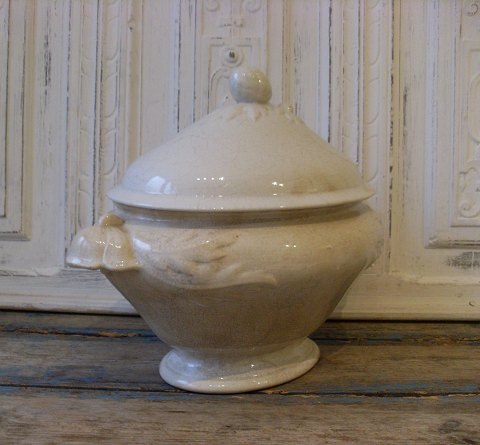 Aluminia Lovisa stor cremefarvet fajance terrin fra 1870.