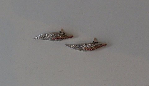 Par bladformede ørestikker i 8 kt hvidguld prydet med adskillige rubiner og diamant