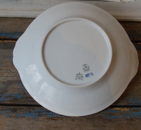 Royal Copenhagen Musselmalet riflet rundt fad med øre No. 2152, 2. sort. Mål 25x27,5cm. Produceret mellem 1923-35.