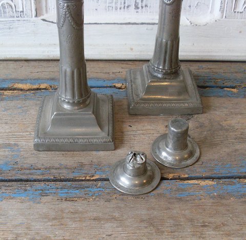 Par Louis XVI tin stager stemplet 1708 Fremstår med skader - se billederne. Graveret med initialer samt årstal 1810 Højde 19cm.
