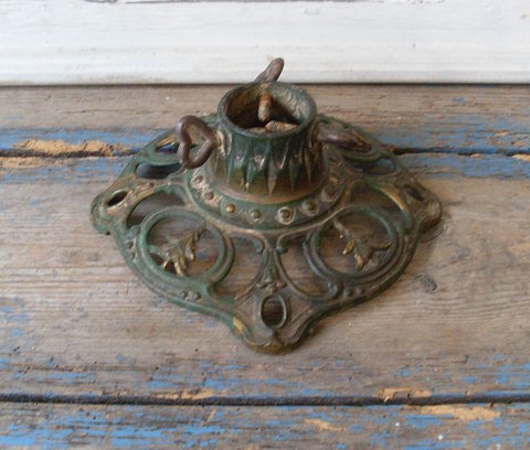 Skøn lille juletræsfod bemalet med grønt og guld.