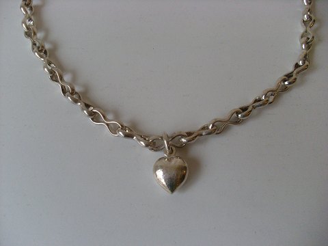 Meget smuk, kraftig halskæde med hjerte i massivt sterlingsølv, udført af Frits Heiring Sørensen.