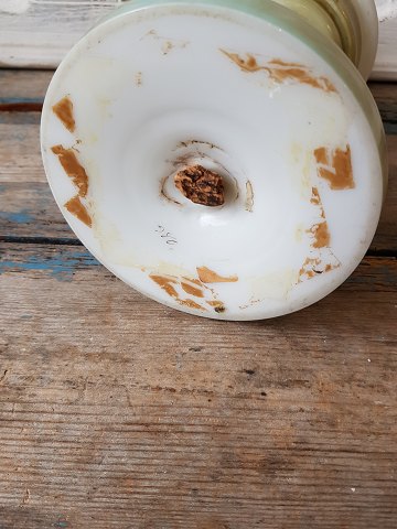 Opaline olielampe omlavet til el. Smukt bemalet i grønne farver med blomster og sommerfugl. Højde incl. fatning 34cm. Prisen er uden skærm.