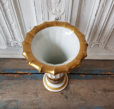 Royal Copenhagen, Juliane Marie Mærket Hetsch vase med kongeblå bort dekoreret med efeu i guld.
