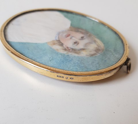 Miniature portræt, pastel på papir i forgyldt sølv ramme 7 x 9 cm.