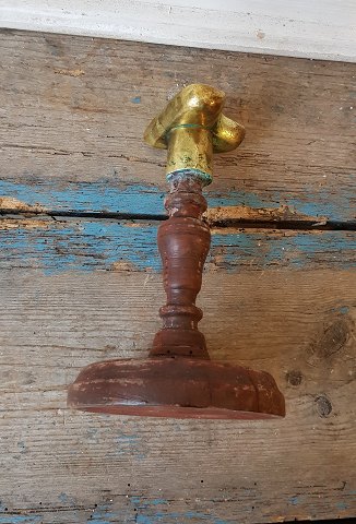 1800tals profitstage, lysestage udført i træ - lyspiben er udført i messing, formet som et hjerte, stagen er en såkaldt "kæreste/kærligheds gave"
