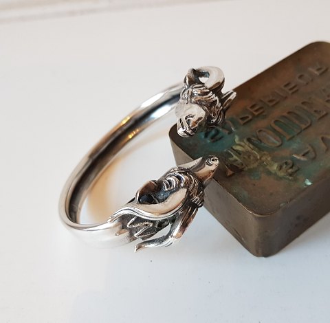 Vintage håndsmedet sølv armring med vædderhoveder.