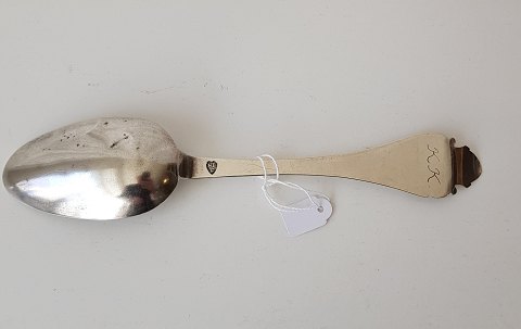 Barok spiseske i sølv 1700tallets 2. halvdel. Stempel HFS i hjerte, er lavet af Hinrich Friedrich Schrøder, Meldorf. Gift 1763 og 1794 i Glückstadt. Død 1802 i Meldorf