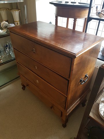 Lille dragkiste i eg fra 1700tallets slutning. Fremstår med lakeret topplade samt manglende låsetøj i 3. skuffe. Mål 47 x 96 cm. Højde 104 cm.