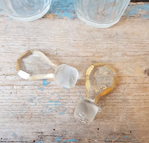 Couple of 1800s Bohemian crystal oil / vinegar decanters decorated with gold