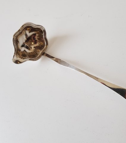 1800tals flødeske i sølv dekoreret med musling Stemplet med mesterstempel - fremstår med svag prik-gravering på bagsiden. Længde 15,5 cm.