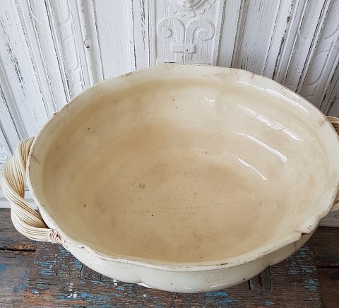 Engelsk creamware stor terrin ca. 1780 Antageligt fra Leeds Pottery Fremstår med et par nag - se billed. Mål 29 x 40 cm. Højde 28 cm.