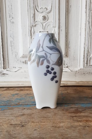 Royal Copenhagen Art Nouveau vase dekoreret med hyldebær No. 1218/240, 1. sort. Højde 17,5 cm. Produceret mellem 1898-1923