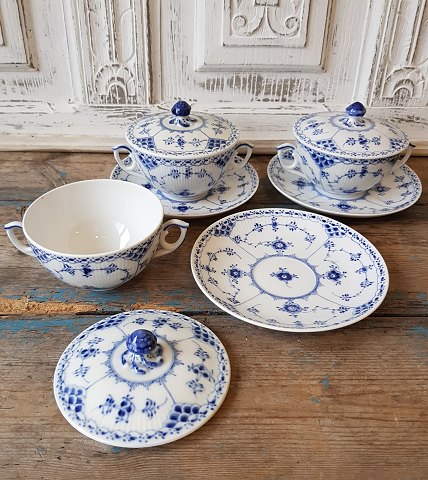Royal Copenhagen Musselmalet halvblonde boullionkop med låg og underkop