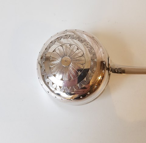 1700tals stor strøske i sølv Stemplet: Hobro/Randers mester Christian Pedersen Høvring 1728-1782. Længde 21,5 cm. Diameter 7,5 cm.