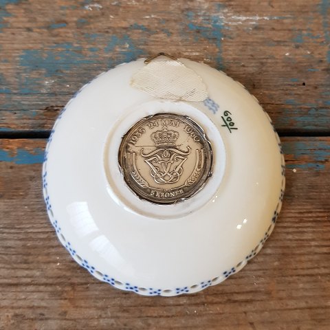 Royal Copenhagen Musselmalet helblonde manchet med sølv mønt - Kong Frederik IX & Dronning Ingrid´s sølvbryllups mønt.