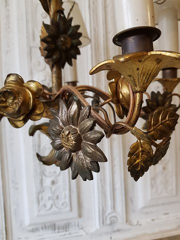 Meget smuk 1800tals fransk femarmet lysekrone dekoreret med blomster og blade. Diameter 70 cm. Højde 50 cm.