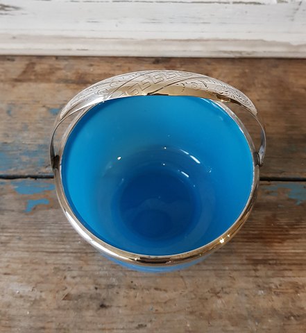 1800tals sukkerskål i lyseblå opaline med forsølvet hank.
