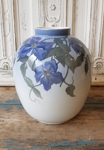 Royal Copenhagen unique - Art Nouveau vase from 1915, beautifully decorated with clematis 24 cm.