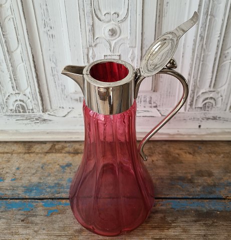 Smuk vinkande i hindbærfarvet glas med forsølvet montering.