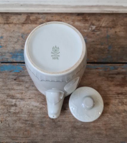 B&G Grå Tone hotelporcelæn kuvert kaffekande med logo "Palæ" fra Palæ konditoriet i Horsens. No. 1070, 1. sort. Højde 14 cm.
