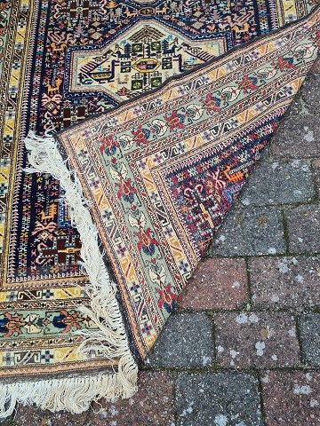 Smukt ægte tæppe - Design med fire geometriske medaljoner.