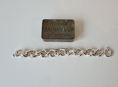 Smukt kraftig armlænke i sterlingsølv Stemplet: 925 Længde 23,5 cm. Bredde 20 mm. Trådtykkelse 6 mm. Vægt 89 gram.