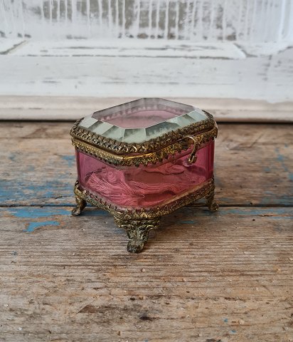 Smukt 1800 tals ottekantet franskskrin i hindbærfarvet glas.