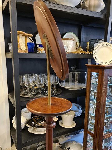 Piedestal i mahogni med justerbart spejl. Spejlet er skråt, så man kan se hvordan slips, butterfly og hat sidder.