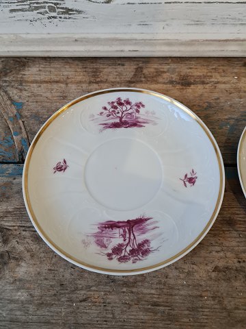 Royal Copenhagen Juliane Marie - store tekopper dekoreret med landskab og blomster i purpur og guld